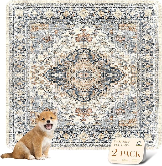 nunubaby Washable Pee Pads for Dogs, Stylish, Non-Slip and Leak-Proof Pee Pads. Reusable Potty Pads for Dogs for Crates and Floors.(Beige/Multi, 36" x36" )