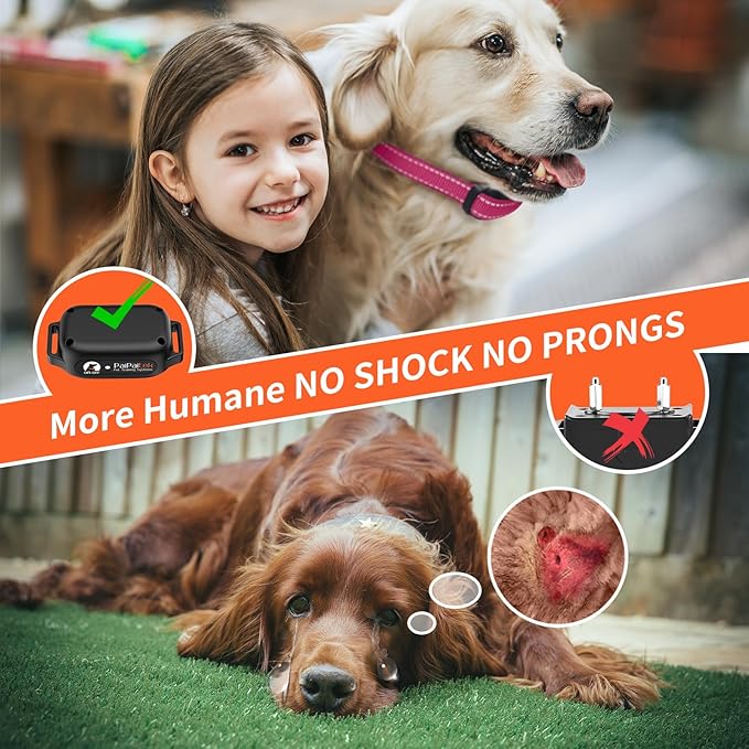 - 【NO SHOCK, NO PRONGS】 PaiPaitek is the first brand to design and develop shockless and prongless dog training collars with the aim of providing a gentler, painless and effective vibrating dog collar for our fur babies. There are no prongs on this beep collar digging into the dog’s neck, and its smooth surface ensures a comfortable fit on the dog's neck