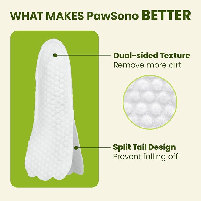 - 【Extra Larger & Thicker】PawSono cat ear wipes custom-sized for the US market. Our pet ear wipes new size eliminates the need to worry about fingers being too thick to wear them, and eliminates the concern about dog ear wipes finger slipping off.