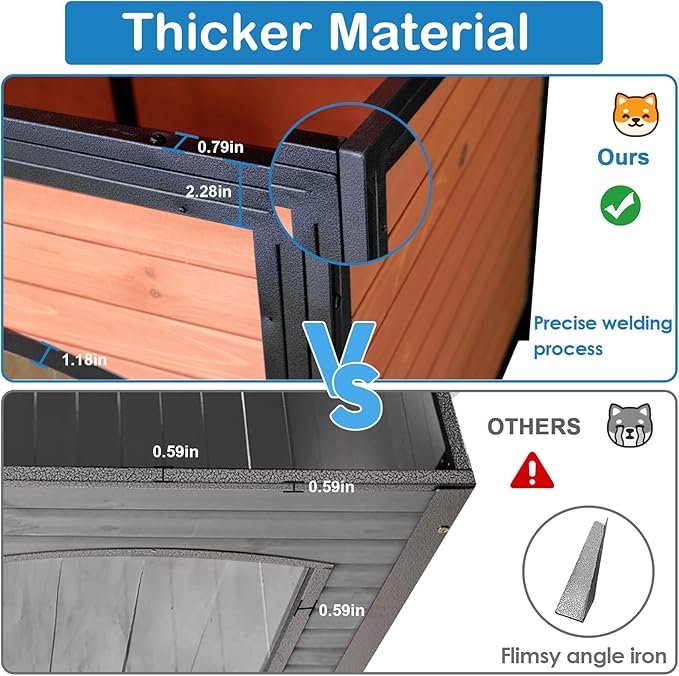 - Stronger Dog House: Different from similar dog house with iron frame on the market, our precision welded iron frame replaces the fragile angle iron and has a longer service life