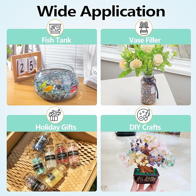 - Wide Application: These chakra healing crystals are not only suitable for home decoration, but can also be given as a birthday or Christmas gift to family and friends. Perfect for decorating aquariums, succulent plants, vases and DIY handcraft projects