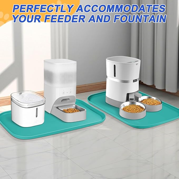 - Widely Used - The anti slip dog food spill mat with high sides can also be used under pet water fountain, automatic feeder, and litter boxes to help contain messes and protect floors. Use as boot mat, shoe matt tray for entryway, pet water splash mat, dog water bowl drip pan. Can also be used for dog crate, trash can, pet water dispenser, countertop, plant, fish tank.