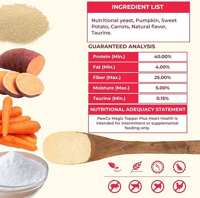 PawCo Magic Topper Heart Health - Dog Food Topper with Taurine, Grain-Free Meal Enhancer for Energy Support, 160g