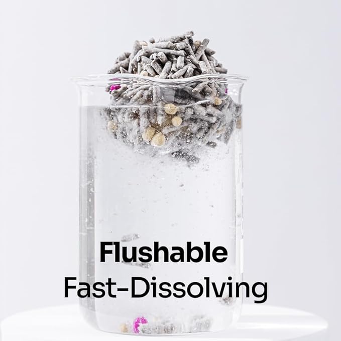- 68% Tofu Cat Litter + Activated Carbon (1.8–2.1mm diameter, 7–16mm length) – Absorbs moisture quickly and locks in odors.