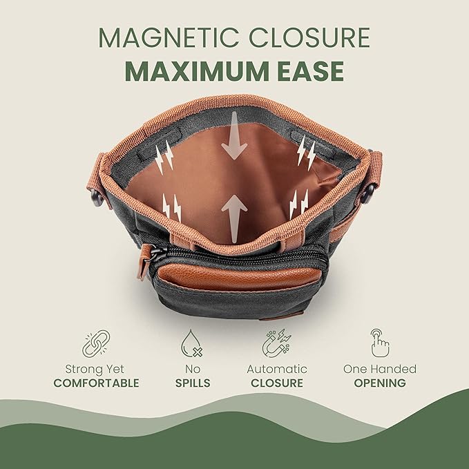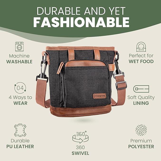- DURABLE & STYLISH DESIGN: This dog treat pouch features double stitching and a metal buckle for enhanced durability. Its sleek, elegant look & premium material ensure long-lasting use, making it the ideal accessory for dog training or daily outings.