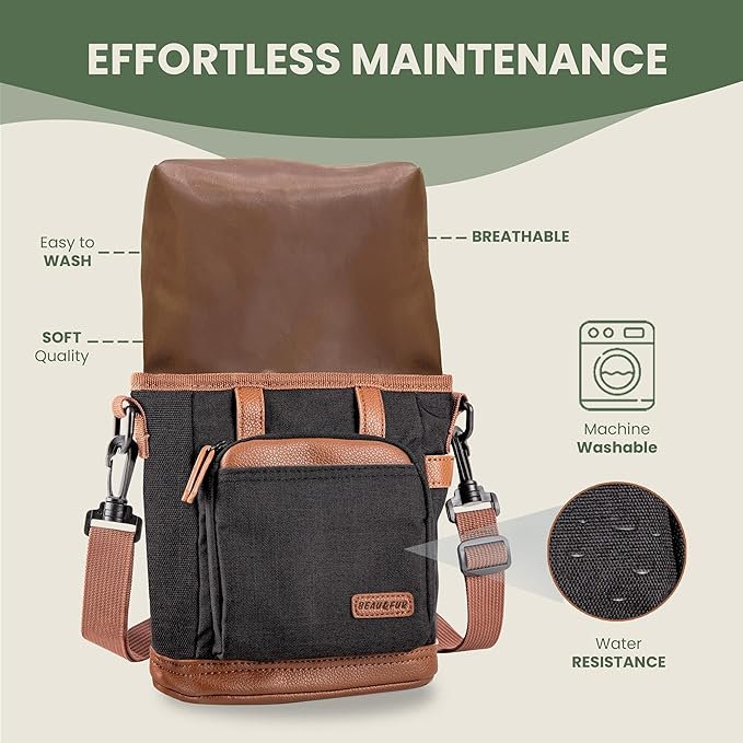 - COMPACT & SPACIOUS STORAGE: The BEAU&FUR treat pouch holds 4 cups of dog treats, providing ample space for all your essential dog training gear. Keep your dog training treats organized and easily accessible, ideal for both trainers and pet owners.