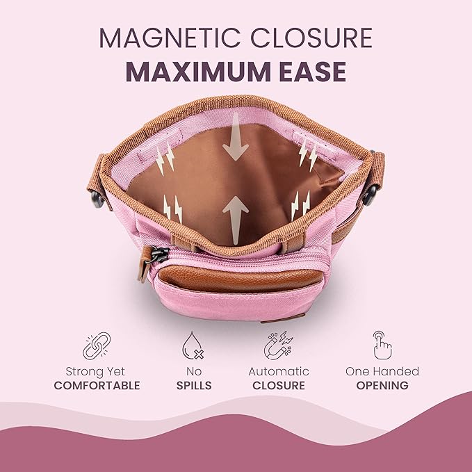 - DURABLE & STYLISH DESIGN: This dog treat pouch features double stitching and a metal buckle for enhanced durability. Its sleek, elegant look & premium material ensure long-lasting use, making it the ideal accessory for dog training or daily outings.