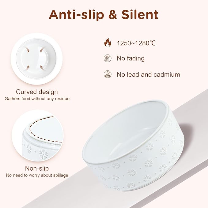 - SELECTED CERAMIC MATERIAL: The bowl is made of high-quality ceramic with a smooth surface and fine structure, which is not only beautiful and elegant, but also safe and hygienic to use. The non-porous nature of the ceramic prevents the absorption of odors or food residues and thus protects the health of your pet