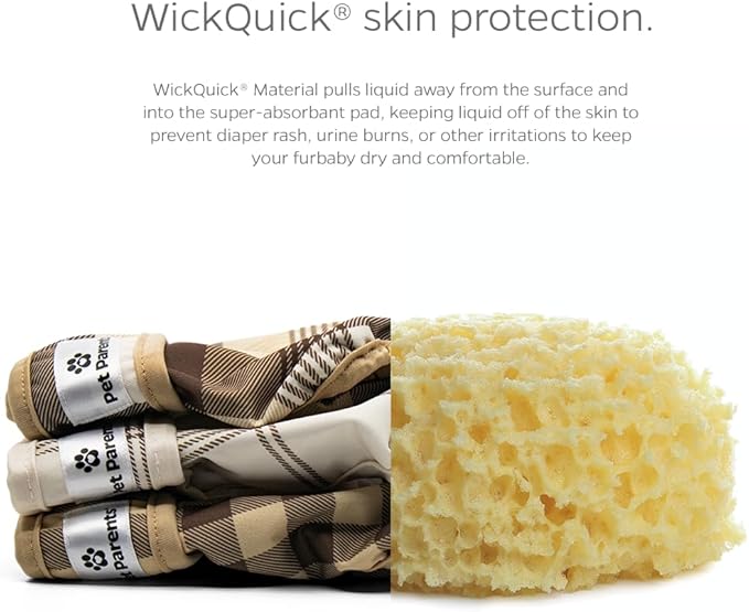 - HIGHLY ABSORBENT DOGGIE DIAPERS: Because we know your Great Dane 'goes' more than your Chihuahua, the diaper pad that is sewn into our dog diapers female increases with the size, because bigger dogs = more liquids. WickQuick material wicks liquid from the surface and into the dog period diapers, keeping your furbaby dry and reducing urine burn or irritation. Our diapers also have a waterproof outer layer to prevent leaks and damage to rugs, carpets, upholstered chairs and sofas.