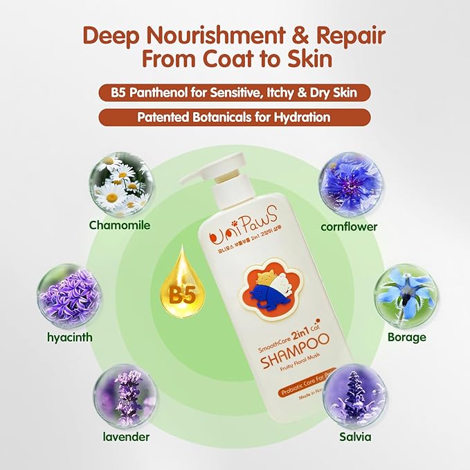 UNIPAWS Cat Shampoo & Conditioner 2-in-1, EWG Verified, Anti-Dandruff & Deshedding for Soft and Shiny Coat, Probiotics Smoothcare for Itchy, Dry Skin, Gifts for Cat Lovers, Made in Korea, 16.9 Fl Oz
