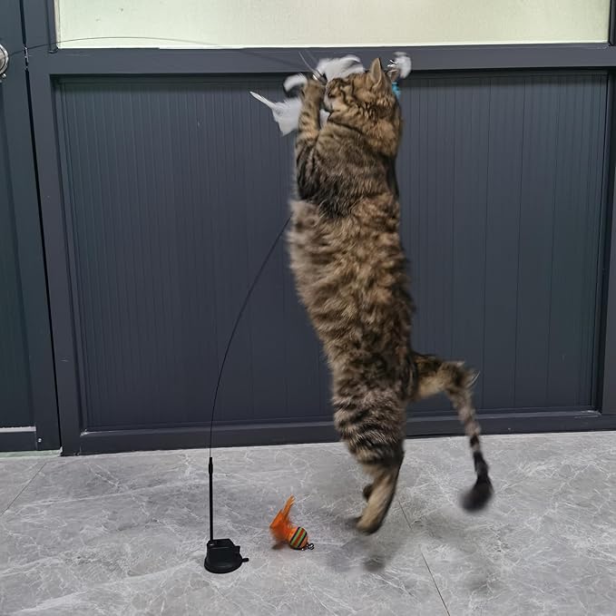 - 3 Replaceable Feather Attachments: Comes with 3 detachable feather replacements, ensuring long-lasting fun. Easily swap out worn or damaged feathers to keep your cat engaged and entertained.