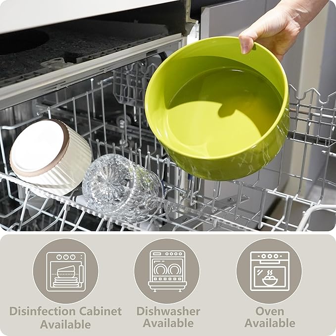 - 【Easy to Clean】Removable and Dishwasher Available — Our ceramic dog bowls are ideal for both dry and wet food, easy to clean and dishwasher safe. The smooth ceramic surface is easy to wipe clean. This makes maintaining a hygienic feeding area simple and hassle-free, ensuring your pet always has a clean dog feeding station for their meals.
