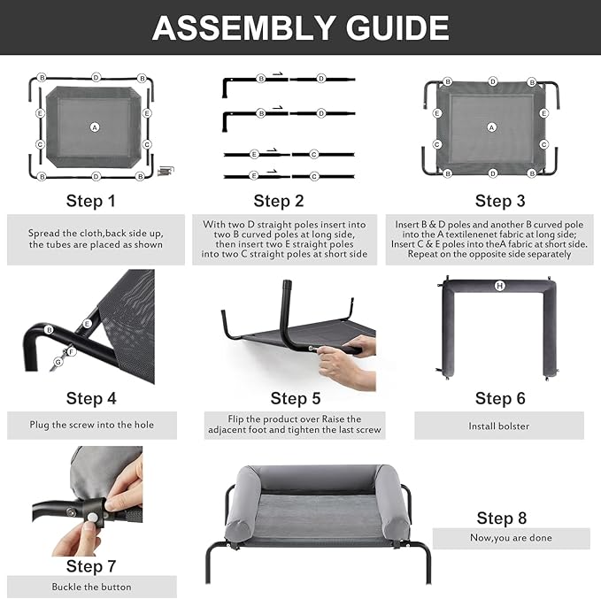 - 【EASY ASSEMBLE COOLING ELEVATED DOG BED SIZE】: Outdoor elevated dog bed for medium and large dogs up to 95 lbs. Very easy to assemble — setup takes just minutes, and even seniors or children can do it. The lightweight design adds portability, making it perfect for travel.