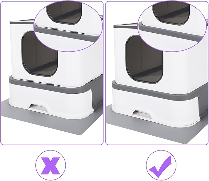 - No Leakage: Sidewalls are fitted with sealed TPR strip plugs to prevent side leakage from male cats. Side opening is angled to prevent urine residue, and the back is optimized for a large elevation to prevent urine residue. The bottom is upgraded to a fully closed bottom plate. It can better ensure the cleanliness of the floor. 360 degrees without dead angle, 100% no leakage.