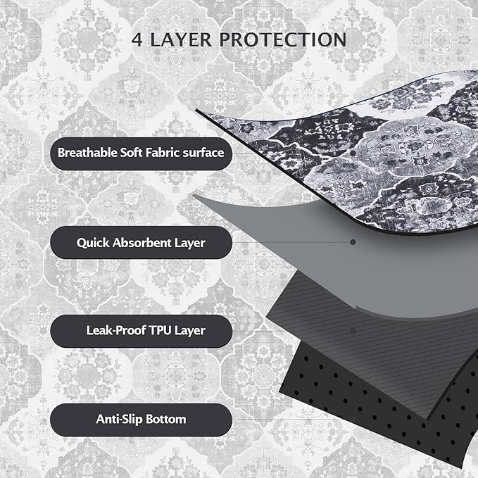 - 【Fashionable and Non-Slip】Our bohemian-print design adds a natural touch to the potty pads for dogs, giving your room a warm, casual vibe. And the non-slip bottom design makes the pet pee pads can achieve a certain fixed effect, you can put it anywhere you want. Soft and non-slip material makes it safer for dogs to use the pads.