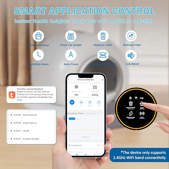 - đŸăBEHAVIORAL HEALTH INSIGHTăProprietary SmartTrack 2.0 technology combines weight sensing with toilet time, and generates toilet records by detecting the toilet time of cats with different weights.