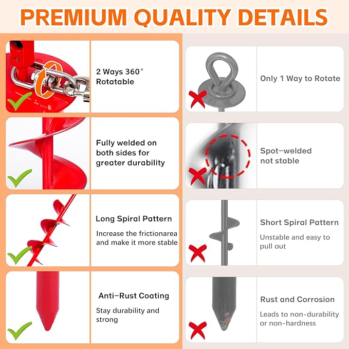 - MULTI-SCENARIO USE: The sharp spiral drill bit and curved auger blade make the dog stake suitable for sand, clay, and even rock. This versatile product is perfect for camping, yard, dog house, and beach environments