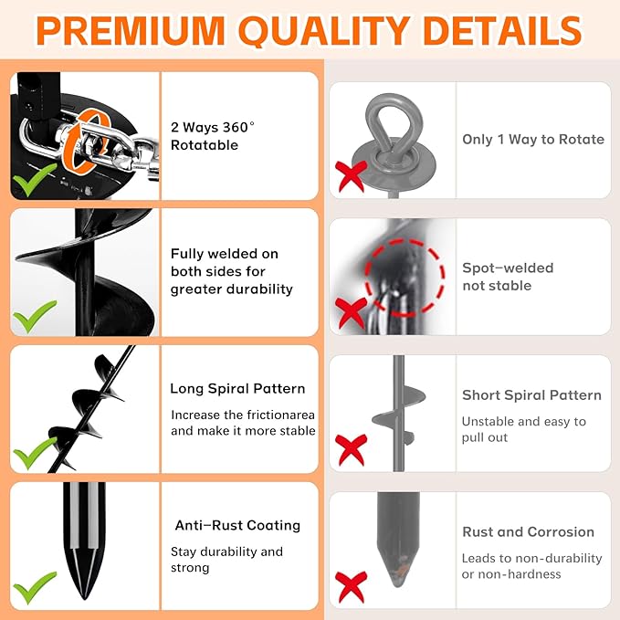 - PREMIUM WORKMANSHIP: The stake features a 360° swivel function to prevent the cable or leash from tangling, enhancing safety. The longer auger blade allows for easier and more secure anchoring of the dog stake in the ground.The surface plastic coating process provides rust protection, extending the product's lifespan