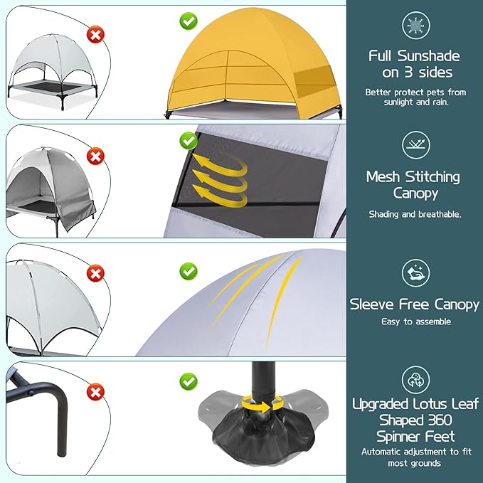 Elevated Outdoor Dog Bed with Canopy & Adjustable Feet - Larger Shade for Camping, Backyard & Patio
