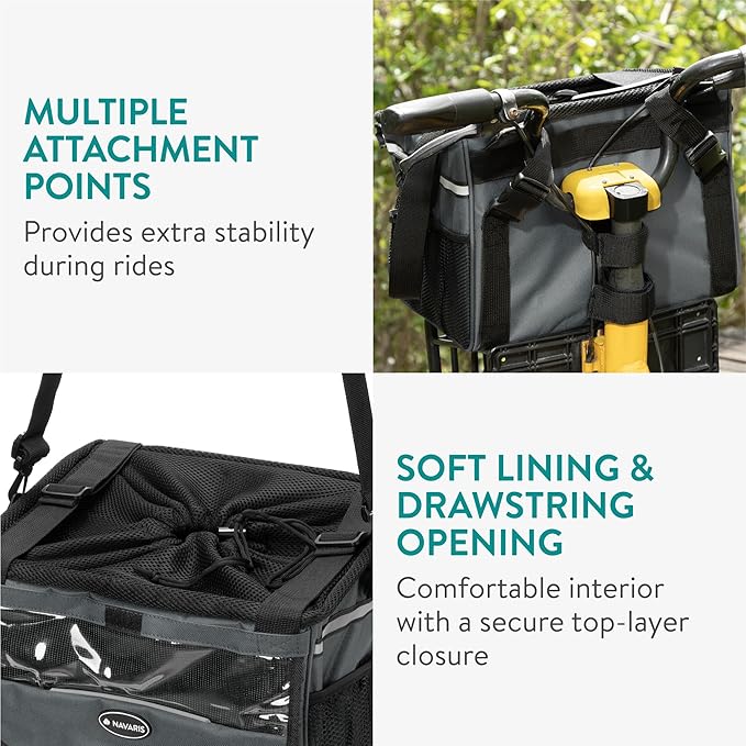 Navaris Pet Carrier for Bikes - Bike Basket Dog Carrier - Ideal Carriers for Small to Medium Dogs Up to 10kg (22lbs) - Drawstring Bag with Secure Locks and Strap - Grey