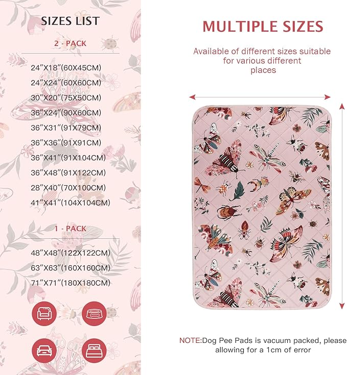 IEUUMLER Washable Pee Pads for Dogs, 2 Pack Insect Pattern Reusable Waterproof Puppy Potty Pads, Non-Slip Absorbent Pet Training Pads for Playpen Crate Bed EU014