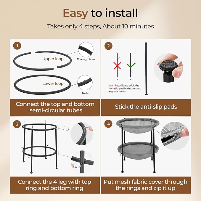 - Stable & Sturdy:The cat hammock bed is equipped with 360°adjustable feet for easy angle and height adjustment.with anti-slip mats on the feet, ensuring it stays firmly in place, preventing tipping or sliding, even when your cats jump in or out.