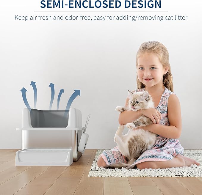 - Simplified Maintenance: Includes a litter scoop for easy cleaning. The XL size holds up to 37 liters of litter, providing enough capacity for up to 30 days of use for one adult cat—perfect for busy schedules or travel, so you can worry less about frequent litter changes.