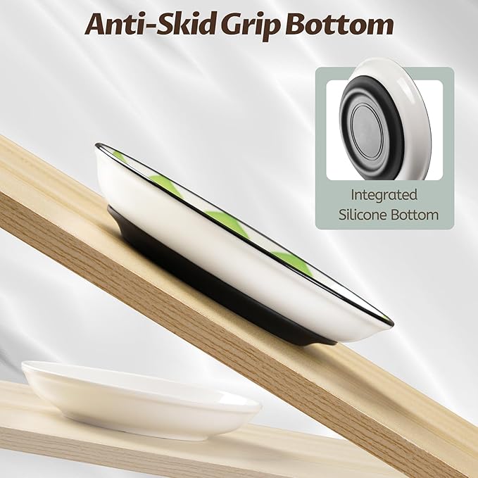 Non-Slip Cat Bowl,Ceramic Cat Food Bowls with Silicone Bottom, Anti-Whisker Fatigue Cats Dishes Set, Shallow & Wide Kitten Plates for Food and Water, 4 Pack