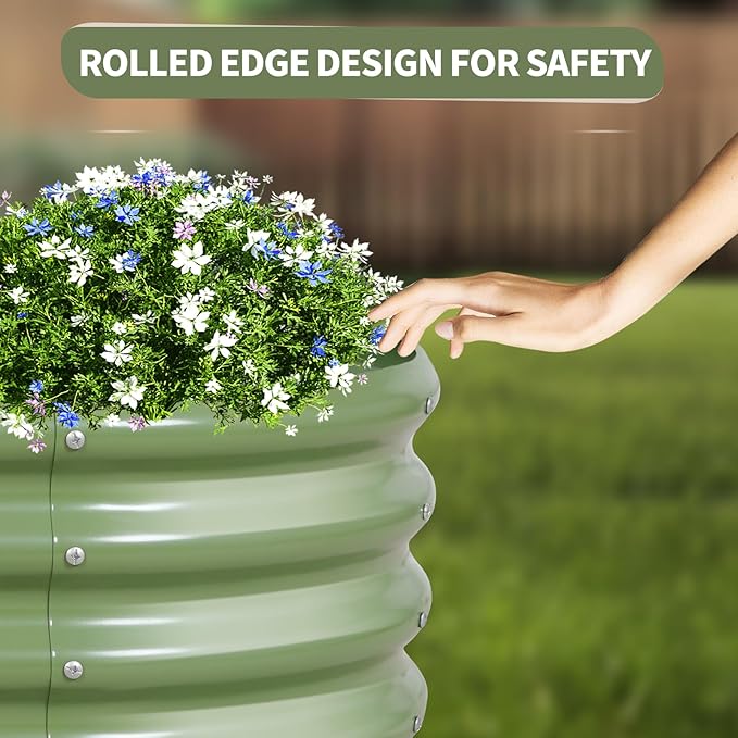 - 【Upgrade Quality & Structure 】The raised garden bed is made of thick galvanized metal with a surface spray coating, which is rust proof and anti-corrosion. Can be used for a long time. The oval design ensures uniform surface force and prevents deformation. More durable than other raised planter box, becoming a good helper for your garden