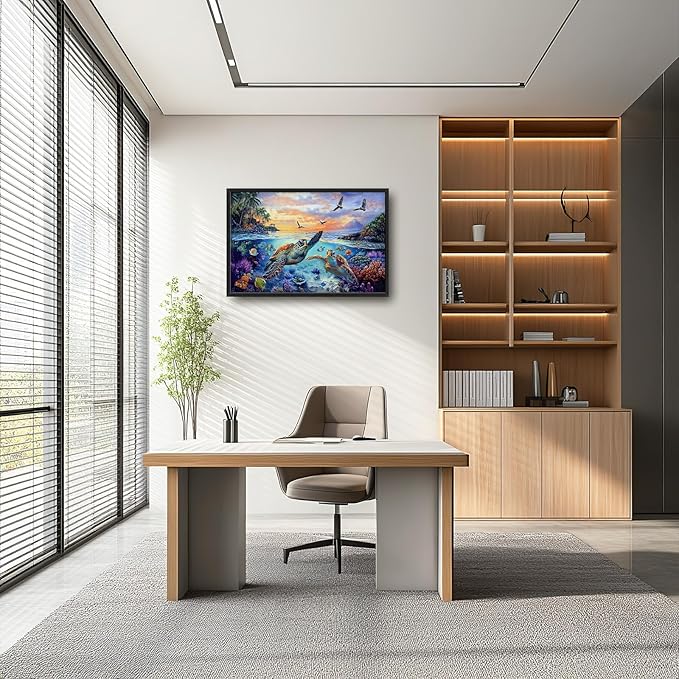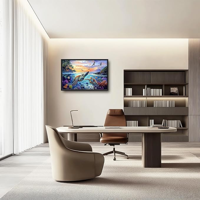 Framed Large Sea Turtle Wall Art for Living Room, Oversized Ocean Turtle Wall Decor Seascape Underwater Marine Life Canvas Painting Home Decoration for Living Room Bedroom Office 36"x24"