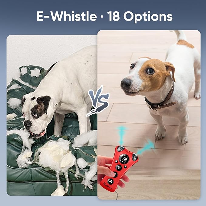 Adjustable Ultrasonic Dog Trainer–World's First Variable Frequency Pet Behavior Corrector with 10 Level Ultra Sound, 18 Dog Whistles, Anti-Bark Flashlight, Safe and Humane Deterrent (Red)