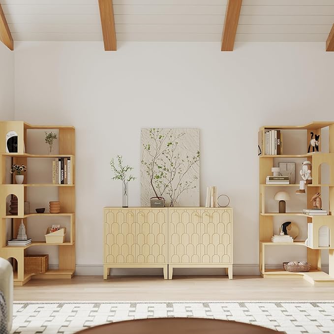 - Boho Modern Design: Large buffet cabinet features a stunning fish scale carving pattern, adding a unique, rustic charm to your dining or living space, which is perfect for those who love bohemian and contemporary styles.