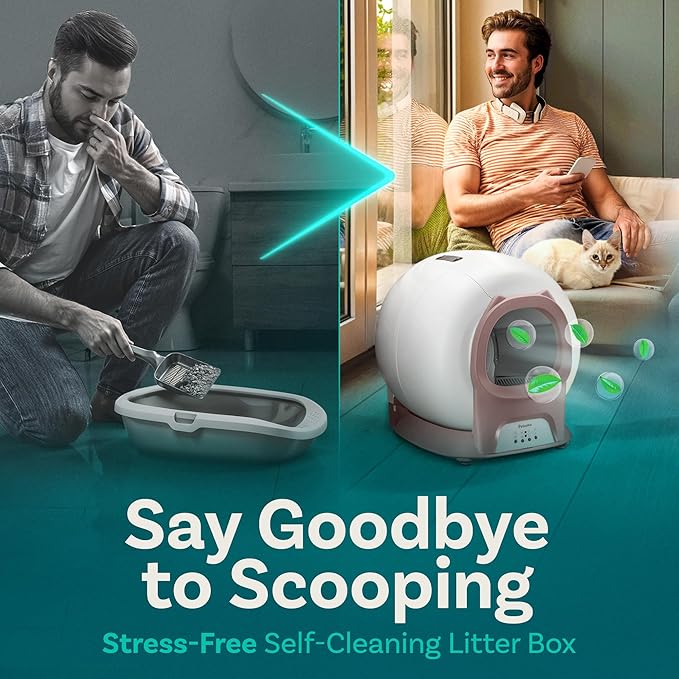 - 【Self Cleaning Litter Box】 Say goodbye to daily scooping. PurrTek auto litter box sifts into a sealed bag after every visit. Just tie and toss for a box that stays clean, fresh, and ready—24/7 convenience for you and comfort for your cat