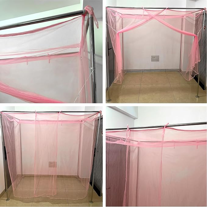 4 Corners Pink Rectangular Mosquito Net for Bed Mosquiteros para Camas Bed Netting Canopy Mosquito Mesh for Camping Outdoor Travel Dormitory Home Bedroom Decor L79 X W47 X H71 Inch
