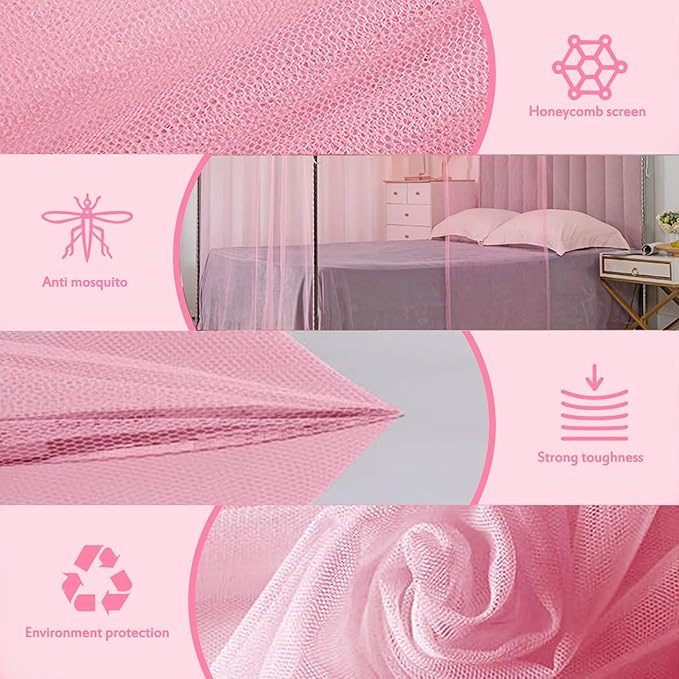 - High-quality Material: Mosquito bed net is made of polyester, ensuring its durability; its fine mesh not only acts as an effective screen to block mosquitoes and others, but also ensures proper air circulation, allowing you to sleep comfortably.