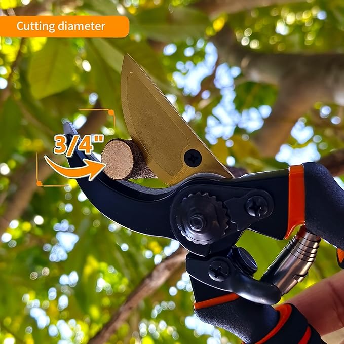 - 🌷8.5" Professional Premium SK5 Steel with Titanium Bypass Pruning Shears-Ultra-sharp And Durable,Ergonomically Designed,Versatility Pruners For Gardening,Safe And Easy To Handle