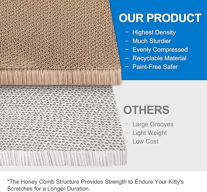 - Durable Protection: Made from thick, eco-friendly, and recyclable cardboard, our scratcher safeguards furniture from unwanted scratches, preserving your sofa and home items.