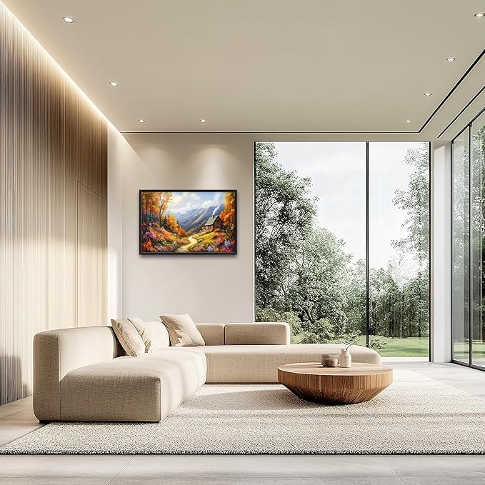 Framed Large Autumn Mountain Wall Art for Living Room, Oversized Wildflower Tree Wall Decor Nature Landscape Canvas Painting Modern Artwork Home Decoration for Living Room Bedroom 36"x24"