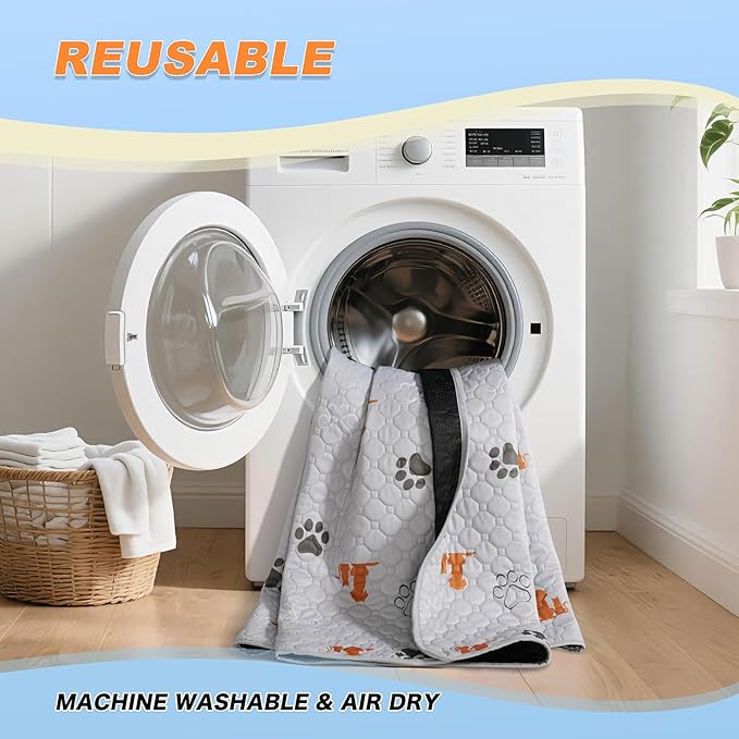 - MACHINE WASHABLE - Say goodbye to disposable pads! These washable puppy pads can be machine washed and reused, saving you money and reducing waste. Whether you're using them for potty training or as an indoor mat for your dog's sleeping area, these pads are built to last. Quick and easy cleaning makes them the perfect solution for busy pet owners.
