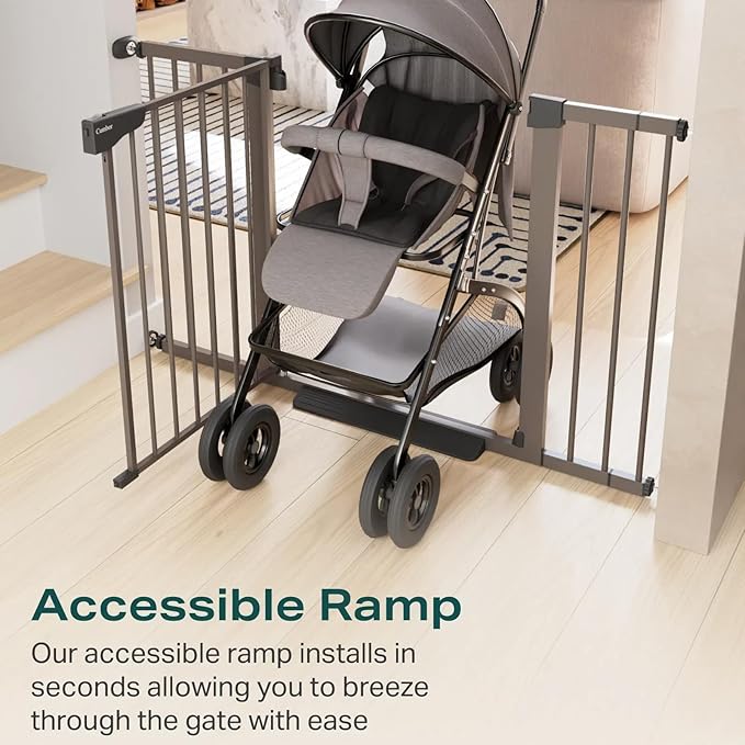 - Dual Locking & Auto-Close System: Features a double-lock mechanism that helps prevent accidental opening by toddlers. The gate automatically closes when opened at less than 90°, offering continuous protection without the need to manually shut it.