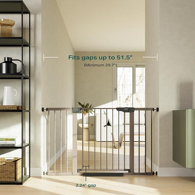 - Extra Wide Walk-Through for Easy Access: Fits openings from 29.7" to 51.5" wide and stands 30.5" tall. The 23.6-inch walk-through door provides more clearance than standard gates—allowing adults to pass through easily, even when holding a baby or carrying items.