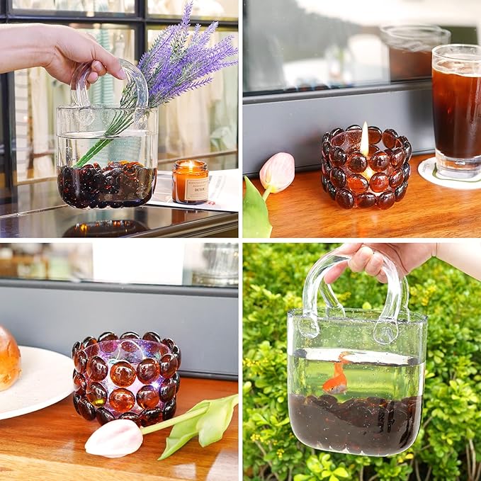 - Multi-Purpose Decor : Perfect as vase filler for weddings, events, fish tank gravel for aquarium landscapes, table centerpiece accents, or DIY art crafts, Resin jewelry, mosaics, epoxy coasters, mixed-media sculptures, candle holder bases.