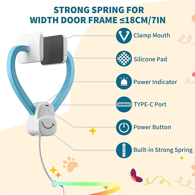 - 【Fit for 99% of Indoor Doors】The universal door clamp design is suitable for any indoor door (bedroom, living room, cat tree) with a width ≤18cm/7 inches, and installing it under the table can also bring interaction, and it can remain stable even when multiple cats play enthusiastically.