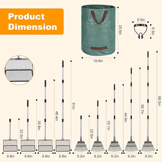 - 【Complete Chicken Poop Scooper kit】: The adjustable metal chicken coop rake allows you to quickly gather droppings, feathers, leaves and garden waste. The sifting shovel separates waste from valuable bedding. The 26 gallon waste bags big with plenty of room for a large amount of waste. The combination of the three tools allows you to complete your chicken coop work efficiently
