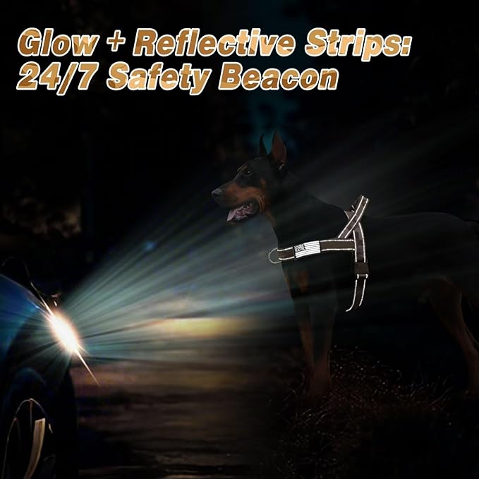 - Reflective Safety: Equipped with reflective strips, the no pull dog harness enhances pet safety during nighttime walks.Large O-ring,quick release buckle and soft padded handle all provide great help for you during daily walking or training exercises