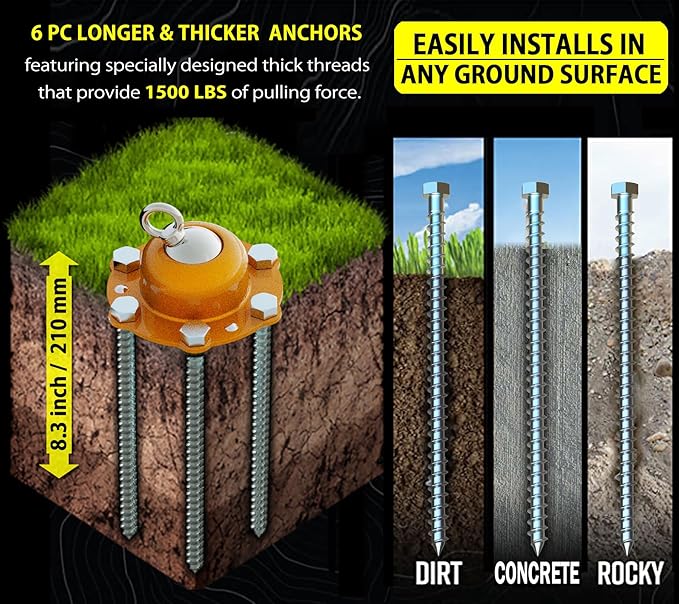 360° Swivel Dog Tie Out Stake with Upgrade 6 Screw Dog Anchors, Heavy Duty & Rust Proof Dog Stake Can Holds 1000Lbs of Pull Force, Up to 150lbs Dogs Perfect to Camping Yard Outdoor (Orange)