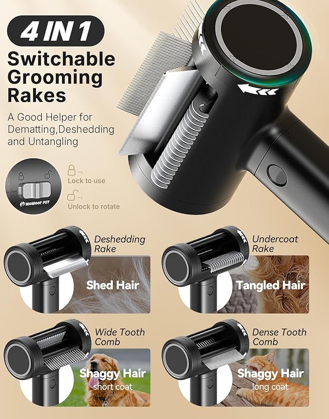 - [Professional Switchable Grooming Rakes] Besides the steam brush, this cat brush also integrate other 4 grooming rakes/combs, meeting different pet hair care needs, such as deshedding, untangling, daily grooming, etc. One WOWOOF PET cat brush, comprehensive pet hair care