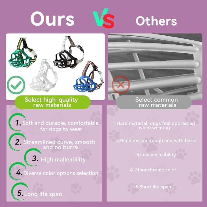 - LIGHTWEIGHT & DURABLE:Made from odorless TPE silicone, this muzzle is lightweight enough for small dogs yet strong and sturdy enough for medium and large dogs, ensuring durability and safety during daily use.