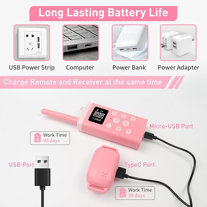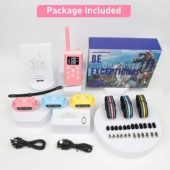 - 【 Waterproof and Battery 】 The shock collar for 3 dogs has an IPX7 waterproof and long-life battery. The work time after a full charge is 90 days for remote control and 30 days for receivers.