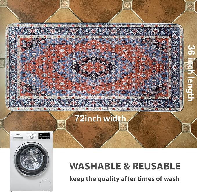 nunubaby Washable Pee Pads for Dogs, Stylish, Non-Slip and Leak-Proof Pee Pads. Reusable Potty Pads for Dogs for Crates and Floors.(Red/Multi, 36" x72")
